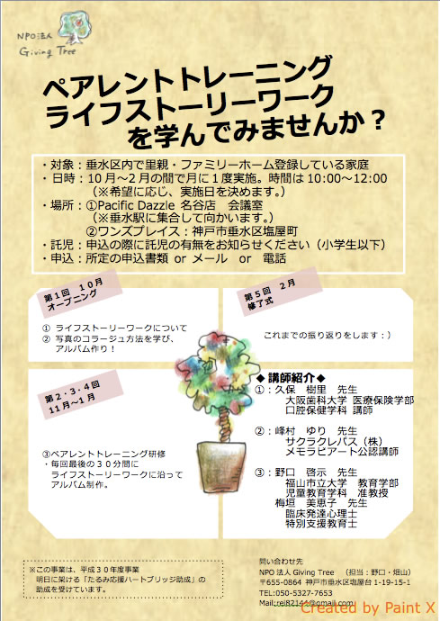 Giving Treeは、里親が子どもに対して愛情と理解を深め、養育できるよう、里親家庭に寄り添いサポートしていきたいと考えています。詳細はこちら